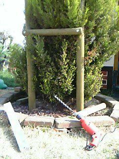 ドリルで穴を開けてネジを通して杭の補強もでき完成しました