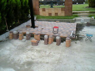 順調に敷き詰めていきます。 たぶんこの時点でレンガ敷きから2日かかっています